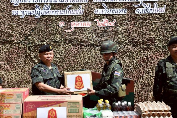 วันที่ 3 ตุลาคม 2568 พลโท วรเทพ บุญญะ แม่ทัพภาคที่ 3/ผู้บัญชาการศูนย์ปฏิบัติการกองทัพภาคที่ 3 และคณะ ตรวจเยี่ยมการปฏิบัติงานของกำลังชายแดน ในพื้นที่หน่วยเฉพาะกิจไชยานุภาพ กองกำลังผาเมือง ณ ฐานปฏิบัติการบ้านแปกแซม อำเภอเวียงแหง จังหวัดเชียงใหม่ รับฟังการบรรยายสรุป พบปะกับกำลังพลที่ปฏิบัติงาน และมอบสิ่งของ ซึ่งเป็นพื้นที่ชายแดนที่มีความสำคัญด้านความมั่นคง และความสงบเรียบร้อยของประเทศ โดยมี พลตรี สาธิต ไวยนนท์ ผู้บัญชาการกองกำลังผาเมืองให้การต้อนรับ และ ร่วมปฏิบัติภารกิจ จากนั้นเดินทางไปตรวจเยี่ยมหน่วยเฉพาะกิจไชยานุภาพ เพื่อรับฟังการบรรยายสรุป ณ ห้องประชุมกองบังคับการหน่วยเฉพาะกิจไชยานุภาพ อำเภอเชียงดาว จังหวัดเขียงใหม่และพบปะ พร้อมทั้งตรวจเยี่ยมกำลังพลการปฏิบัติงาน ทั้งนี้แม่ทัพภาคที่ 3 ได้เน้นย้ำถึงบทบาทสำคัญของหน่วยเฉพาะกิจในพื้นที่ชายแดนว่า นอกจากการป้องกันภัยคุกคามต่อความมั่นคงของประเทศแล้ว ยังต้องให้ความสำคัญกับการเสริมสร้างความสัมพันธ์อันดีกับประชาชนในพื้นที่ และการร่วมมือกับหน่วยงานภาครัฐส่วนอื่น ๆ รวมทั้งความร่วมมือกับประเทศเพื่อนบ้าน เพื่อให้การดูแลรักษาความสงบเรียบร้อยและการแก้ไขปัญหายาเสพติดมีประสิทธิภาพมากยิ่งขึ้น นอกจากนี้ ยังได้กล่าวชื่นชมกำลังพลที่ปฏิบัติหน้าที่อย่างทุ่มเท เสียสละ และยึดมั่นในอุดมการณ์ของทหารผู้พิทักษ์ชายแดน พร้อมกำชับให้ทุกนายยึดมั่นในระเบียบวินัย รักษามาตรฐานในการปฏิบัติงาน และให้ความสำคัญกับการมีจิตใจเข้มแข็ง เพื่อเผชิญกับสถานการณ์และความท้าทายในพื้นที่ชายแดนที่มีความซับซ้อน