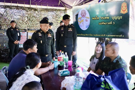 วันที่ 16 พฤศจิกายน 2568 พลโท วรเทพ บุญญะ แม่ทัพภาคที่ 3 พร้อมคณะ เดินทางตรวจเยี่ยมและให้กำลังใจน้องทหารใหม่ รวมถึงพบปะครอบครัวของทหารกองประจำการ ในกิจกรรม “เยี่ยมญาติน้องทหารกองประจำการ ผลัดที่ 2 ประจำปี 2568” ณ กองพันทหารปืนใหญ่ที่ 104 กรมทหารปืนใหญ่ที่ 4 และ กองพันทหารม้าที่ 9 กองพลทหารราบที่ 4 กิจกรรมดังกล่าวเป็นโครงการที่กองทัพบกดำเนินการในทุกหน่วยฝึกทหารใหม่ เพื่อเปิดโอกาสให้ครอบครัวของน้องทหารได้เข้ามาเยี่ยมเยียน พูดคุย และให้กำลังใจ หลังจากบุตรหลานเข้ามารับราชการทหารเป็นครั้งแรก เพื่อช่วยคลายความกังวลเกี่ยวกับชีวิตความเป็นอยู่ ตลอดจนให้ทหารใหม่ได้รับทราบข่าวสารและกำลังใจจากทางบ้าน ทั้งนี้ แม่ทัพภาคที่ 3 ได้พบปะและพูดคุยกับญาติของทหารใหม่ โดยได้เน้นย้ำให้ผู้ฝึกและหน่วยฝึกทหารใหม่ให้การต้อนรับและดูแลญาติอย่างเหมาะสม เพื่อสร้างความมั่นใจแก่ครอบครัวถึงความปลอดภัยของทหารใหม่ตลอดช่วงการฝึก พร้อมกำชับให้ดูแลเรื่อง หลักสูตรการฝึกและคุณภาพชีวิต ของทหารใหม่อย่างใกล้ชิด ตั้งแต่การพักผ่อน อาหารการกิน ไปจนถึงการฝึกประจำวัน เพื่อให้น้องทหารมีความเป็นอยู่ที่ดีและสามารถพัฒนาตนเองได้อย่างเต็มศักยภาพ แม่ทัพภาคที่ 3 ยังให้ความสำคัญกับการ ส่งเสริมการต่อยอดด้านการศึกษา ของทหารใหม่ เพื่อให้มีโอกาสพัฒนาความรู้และทักษะในอนาคต พร้อมกำชับผู้บังคับหน่วยฝึก ครูฝึก และผู้เกี่ยวข้องทุกนายให้ปฏิบัติตามรูปแบบการฝึกของ กรมยุทธศึกษาทหารบก รวมถึงมาตรการด้านสาธารณสุขอย่างเคร่งครัด โดยเฉพาะการป้องกัน โรคลมร้อน (Heat Stroke) ซึ่งครูฝึกต้องทำตัวเป็นแบบอย่างที่ดี นอกจากนี้ ยังได้เน้นในเรื่อง สิทธิกำลังพล ที่ทหารใหม่ควรได้รับครบถ้วน พร้อมทั้งสนับสนุนการประชาสัมพันธ์เส้นทางสู่การเป็น ทหารอาชีพ ให้กับผู้ที่สนใจ โดยย้ำว่าทหารกองประจำการทุกนายเมื่อเข้ามาอยู่ในรั้วกองทัพบก ถือเป็น “น้องคนเล็กของกองทัพบก” ที่ต้องได้รับการดูแลอย่างดีที่สุดทั้งด้านความปลอดภัยและคุณภาพชีวิต