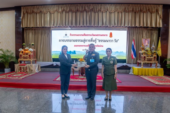 วันที่ 17 มีนาคม 2569 ณ สโมสรนายทหารค่ายสุริยพงษ์ มณฑลทหารบกที่ 38 ตำบลในเวียง อำเภอเมืองน่าน จังหวัดน่าน พลโท วรเทพ บุญญะ แม่ทัพภาคที่ 3 พร้อมด้วย คุณอิสรีย์ บุญญะ ประธานสมาคมแม่บ้านทหารบก สาขากองทัพภาคที่ 3 เข้าร่วมกิจกรรมอบรมศีลธรรมและวัฒนธรรมทหาร ประจำเดือนมีนาคม 2569 ซึ่งกองทัพภาคที่ 3 จัดขึ้นอย่างต่อเนื่อง เพื่อเสริมสร้างคุณธรรม จริยธรรม และปลูกฝังค่านิยมที่ดีงามให้แก่กำลังพลทุกระดับ การอบรมในครั้งนี้จัดขึ้นภายใต้หัวข้อ “การบรรยายธรรมสู่การตื่นรู้ ธรรมนาวา วัง” โดยได้รับเมตตาจาก พระราชญาณวัชรชิโนภาส (พระอาจารย์ต้น) พร้อมด้วยพระวิทยากรและวิทยากรผู้ทรงคุณวุฒิ ร่วมถ่ายทอดหลักธรรมคำสอนทางพระพุทธศาสนา ผ่านการบรรยายที่มุ่งเน้นการสร้างความเข้าใจในเรื่องสติ การรู้เท่าทันตนเอง และการดำเนินชีวิตอย่างมีคุณค่าและสมดุล ทั้งนี้ เนื้อหาการบรรยายได้สอดแทรกข้อคิด คติธรรม และแนวทางการนำหลักธรรมไปประยุกต์ใช้ในชีวิตประจำวัน รวมถึงการปฏิบัติหน้าที่ราชการอย่างมีสติ รอบคอบ และยึดมั่นในคุณธรรม ซึ่งเป็นพื้นฐานสำคัญของการเป็นกำลังพลที่มีคุณภาพและมีจิตสำนึกต่อสังคมและประเทศชาติ
