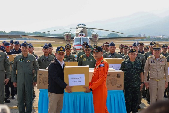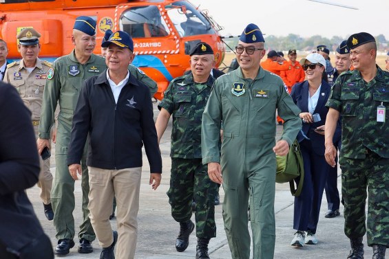 | เมื่อ 8 เม.ย. 69 เวลา 1400 พล.ท. วรเทพ บุญญะ มทภ.3/ ผอ.ศปก.ปกป.ภาค 3, พล.ท. ชายแดน กฤษณสุวรรณ มทน.3/ รอง ผอ.ศปก.ปกป.ภาค 3 สน., ผวจ.ช.ม. และส่วนราชการในพื้นที่ ร่วมให้การต้อนรับ พล.ท. อดุลย์ บุญธรรมเจริญ รมว.กห. พร้อมคณะ ในการตรวจเยี่ยมหน่วยปฏิบัติการบิน แก้ไขปัญหาไฟป่าหมอกควัน และฝุ่นละออง ในพื้นที่ 17 จังหวัดภาคเหนือ, รับฟังการบรรยายสรุปสถานการณ์หมอกควันไฟป่า และฝุ่นละอองในพื้นที่ภาคเหนือ พร้อมทั้งพบปะ ให้กำลังใจชุดปฏิบัติการบิน ภาคีเครือข่ายอากาศยานร่วมดับไฟป่า และมอบหน้ากากอนามัยและเวชภัณฑ์ ณ กองบิน 41 อ.เมืองเชียงใหม่ จว.ช.ม. |